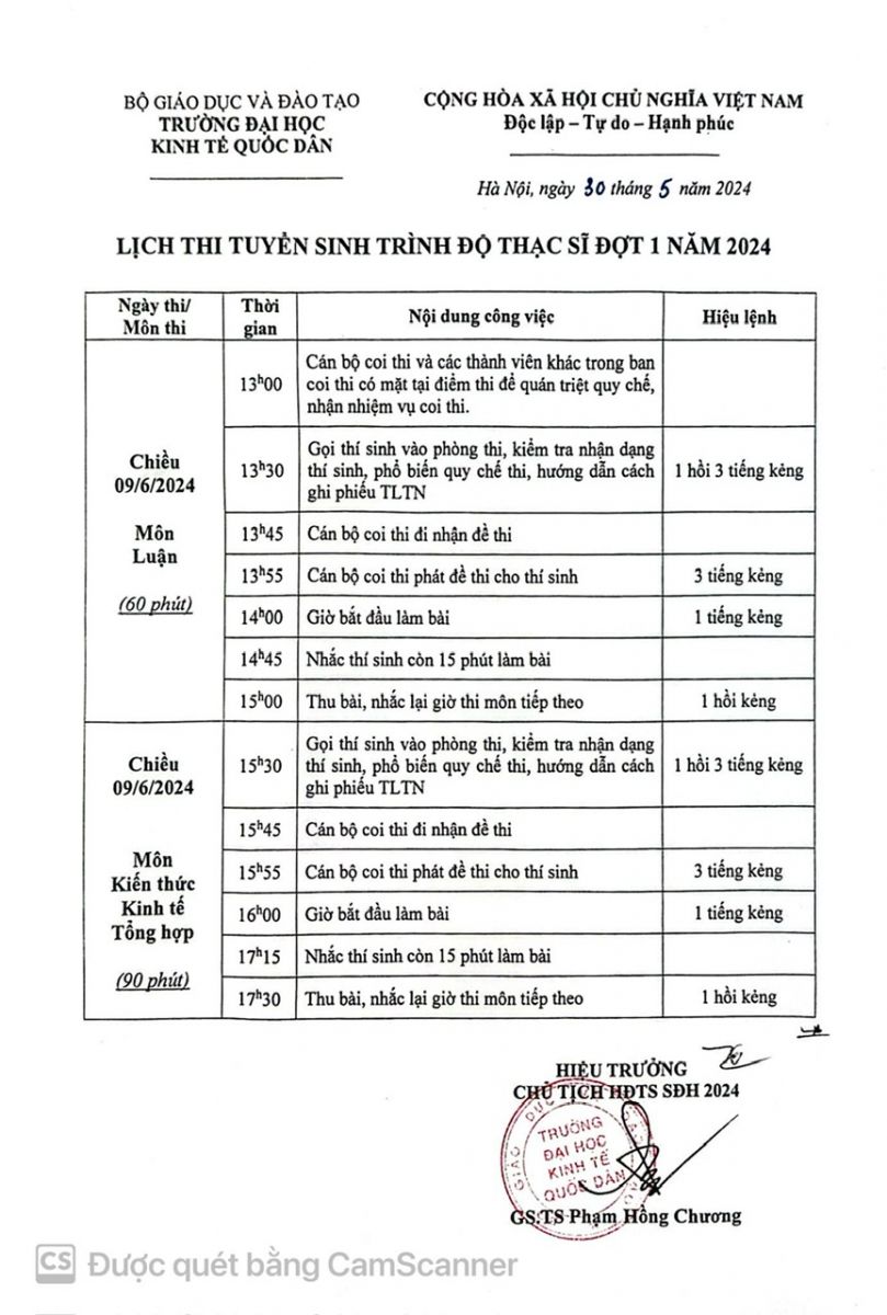 Viện Đào tạo Sau đại học thông báo Lịch thi, Danh sách phòng thi và số báo danh Tuyển sinh sau đại học đợt 1 năm 2024