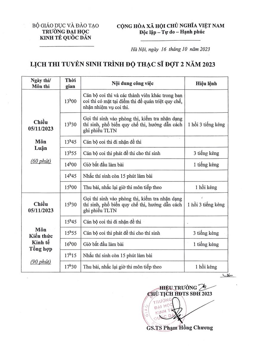Kết quả thi dự kiến sẽ công bố trong thời gian từ 14/11 - 16/11/2023 trên website: http://sdh.neu.edu.vn/
