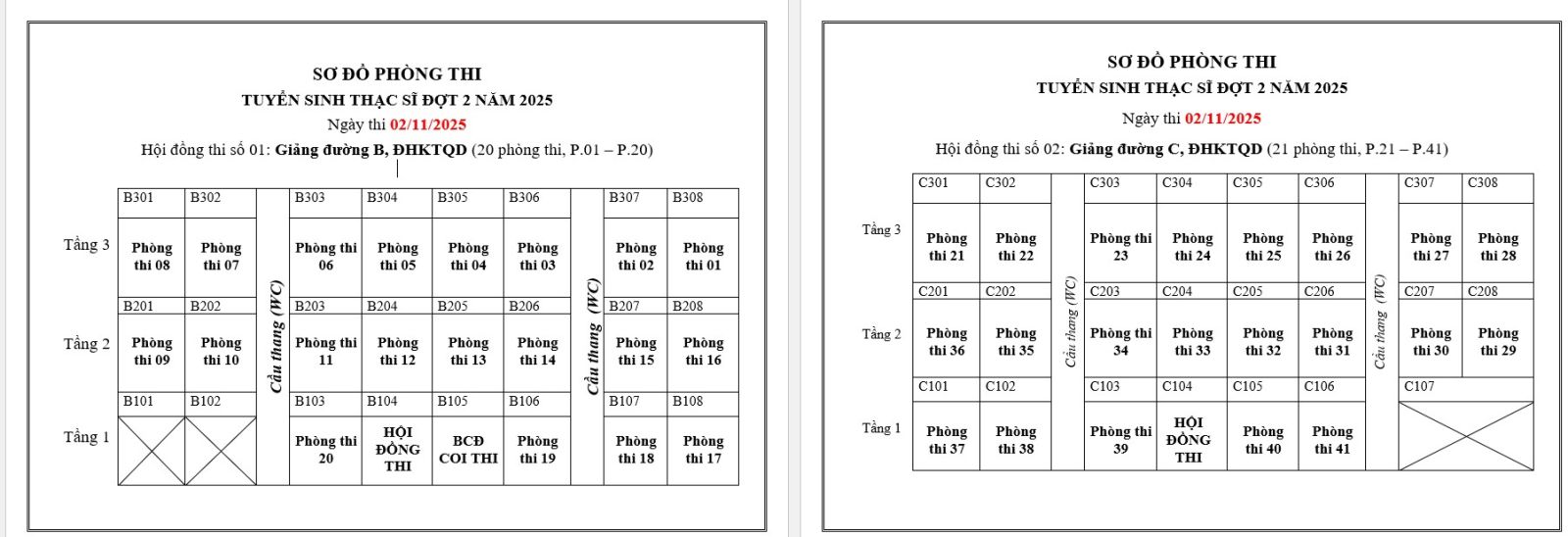 Địa điểm thi: giảng đường B, C - ĐHKTQD